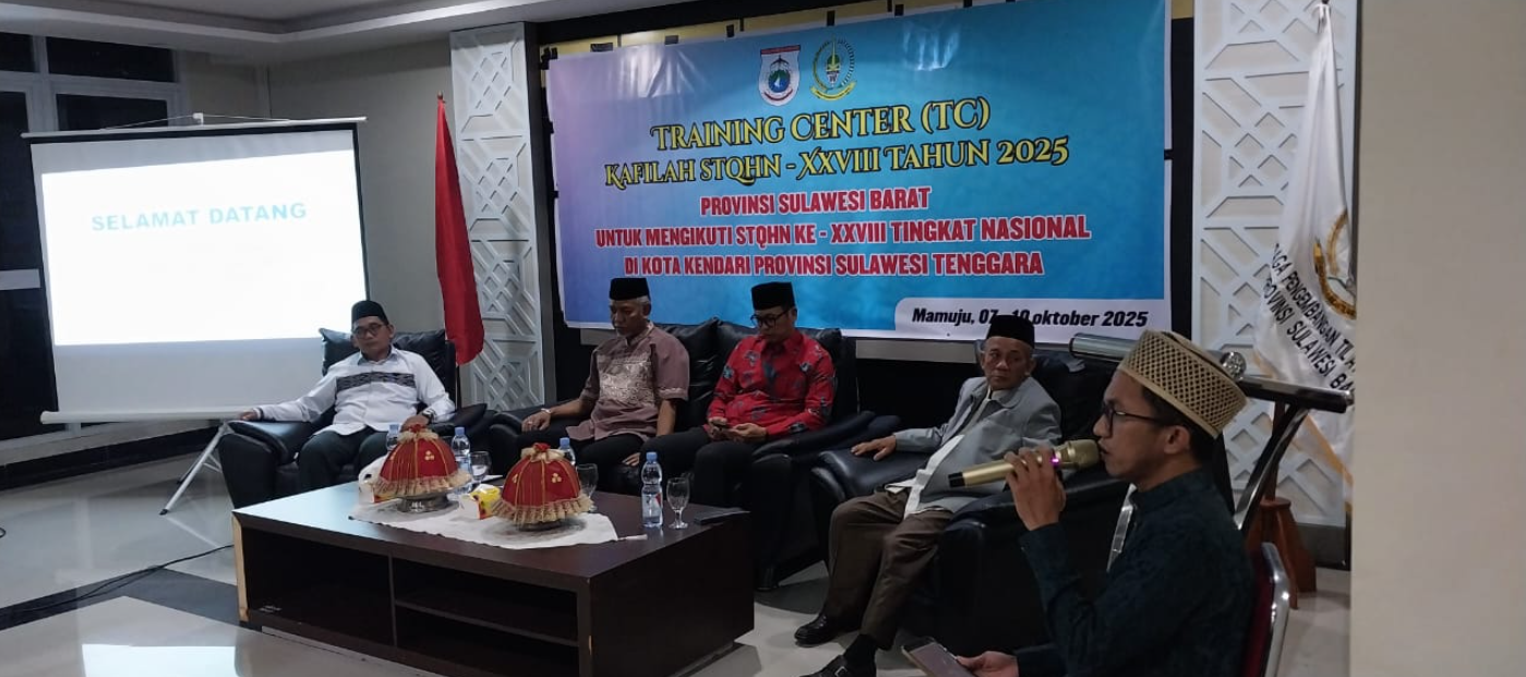 Mamuju - Biro Pemkesra Setda Provinsi Sulawesi Barat resmi menggelar Training Center (TC) bagi kafilah Sulbar yang akan mengikuti Seleksi Tilawatil Qur’an dan Hadits (STQHN) XXVIII Tingkat Nasional di Kendari, Sulawesi Tenggara. Kegiatan ini berlangsung di Asrama Haji Mamuju, Selasa (7/10/2025) malam.