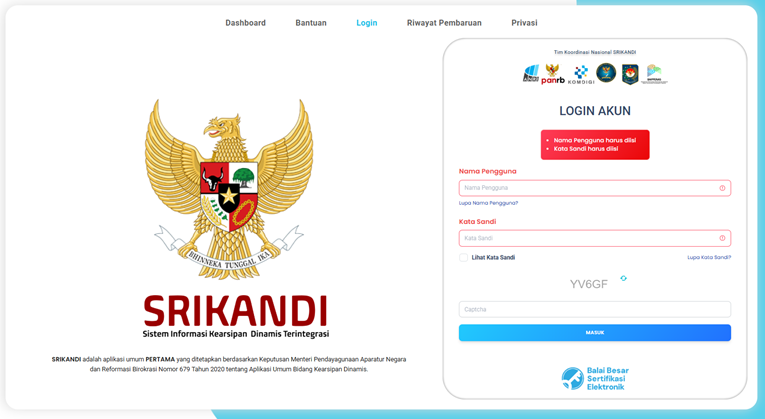Silahkan di klik pada tautan : https://srikandi.arsip.go.id/auth/login